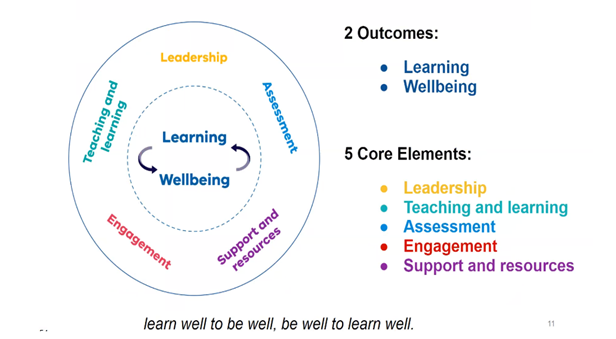Wellbeing has a large effect on student learning outcomes, and success in learning enhances student wellbeing. The Department of Education recognises this by adding wellbeing to the centre of FISO (Framework for Improving Student Outcomes )2.0